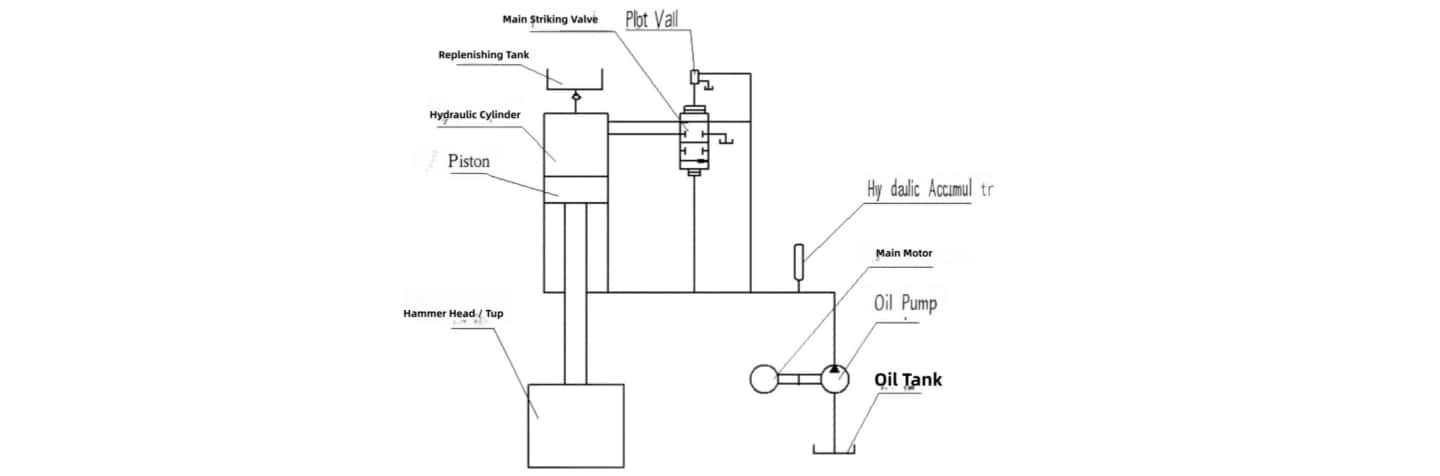The fundamental operating principle of the C92KA CNC full-hydraulic die-forging hammer is as follows: It utilizes a motor-pump-accumulator drive system. The lower chamber of the cylinder is constantly connected to the accumulator, maintaining a constant pressure. The control system manages the upper chamber independently. When the upper chamber intake valve (also called the strike valve) opens, high-pressure oil from three sources—the pump, the accumulator, and oil diverted from the lower chamber via a differential circuit—enters the upper chamber. This action accelerates the ram downward for the forging stroke. Once the upper chamber pressure is released, the ram immediately and quickly retracts. Precise control over the strike energy is achieved by managing the duration for which the strike valve remains closed.